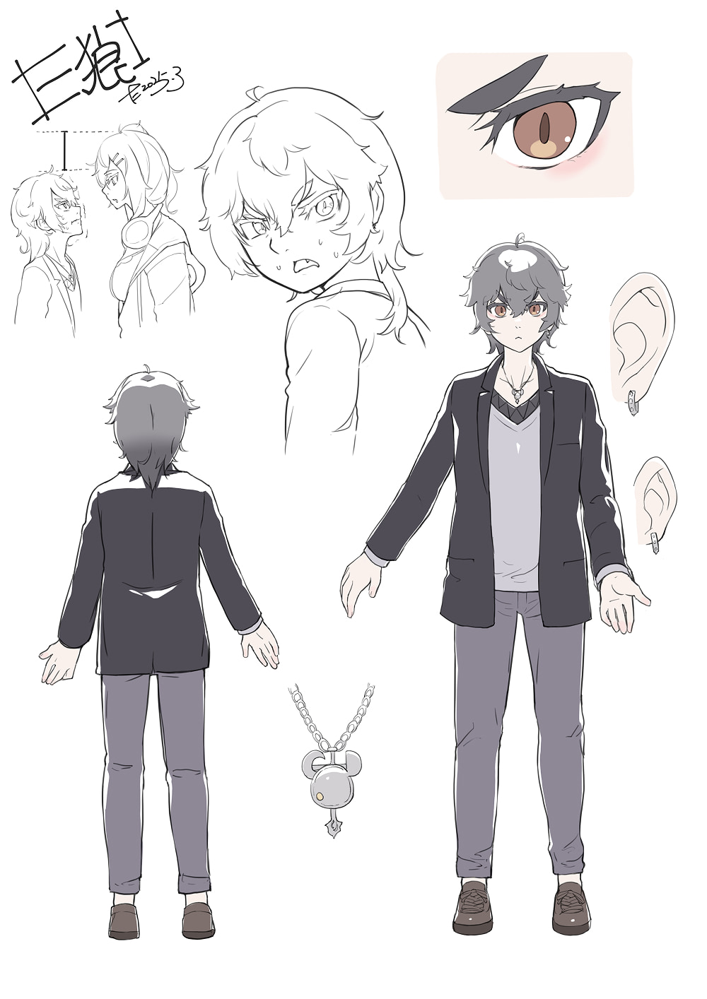 オリジナルキャラクター「一狼」の設定画 | An illustration of character Ichiro's design from Original.