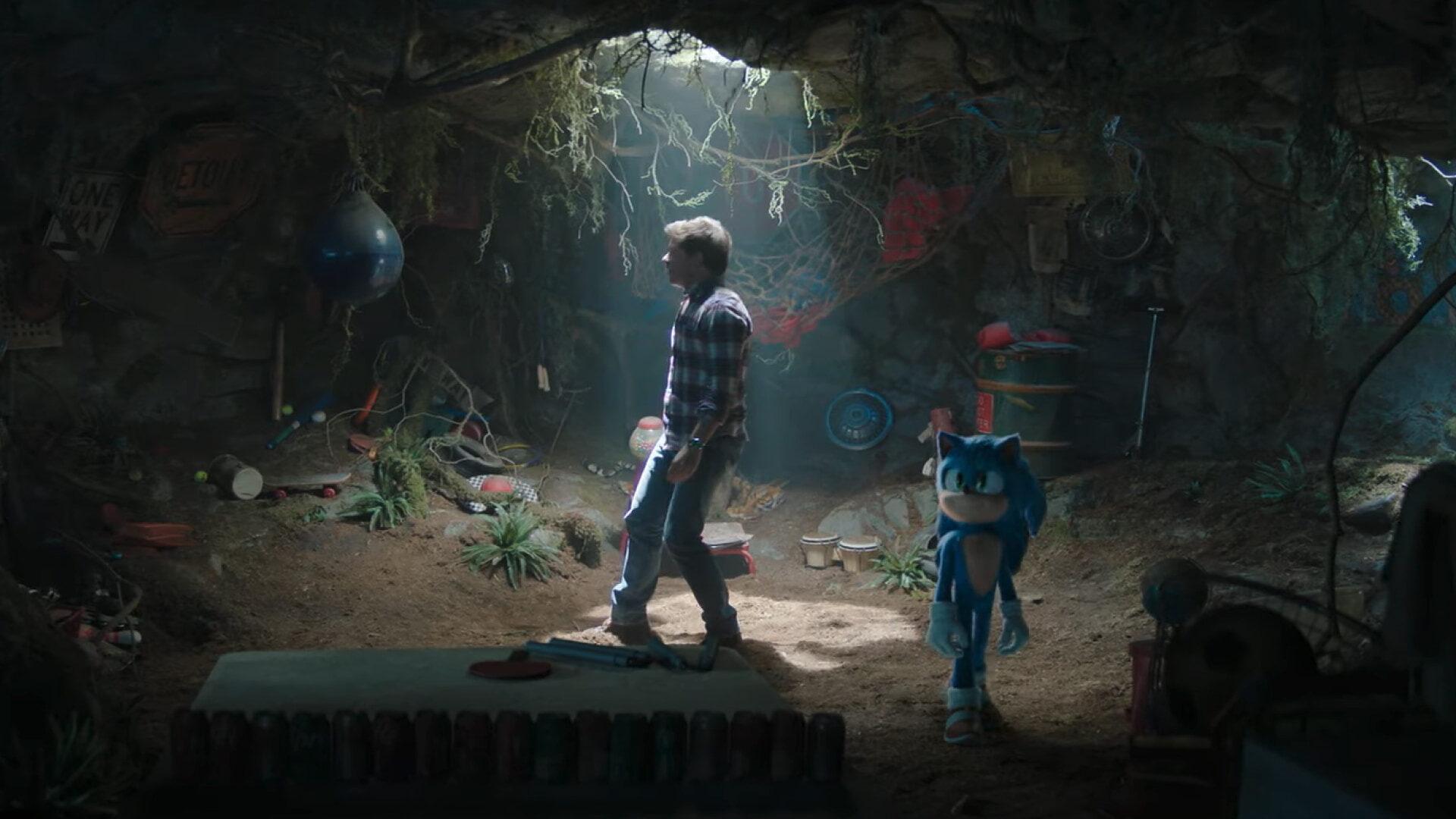 本作冒頭でトムがソニックが1作目で暮らしていた洞窟を、「洞窟に何年も住んでたなんて」と、はじめて見たような反応をしています。
